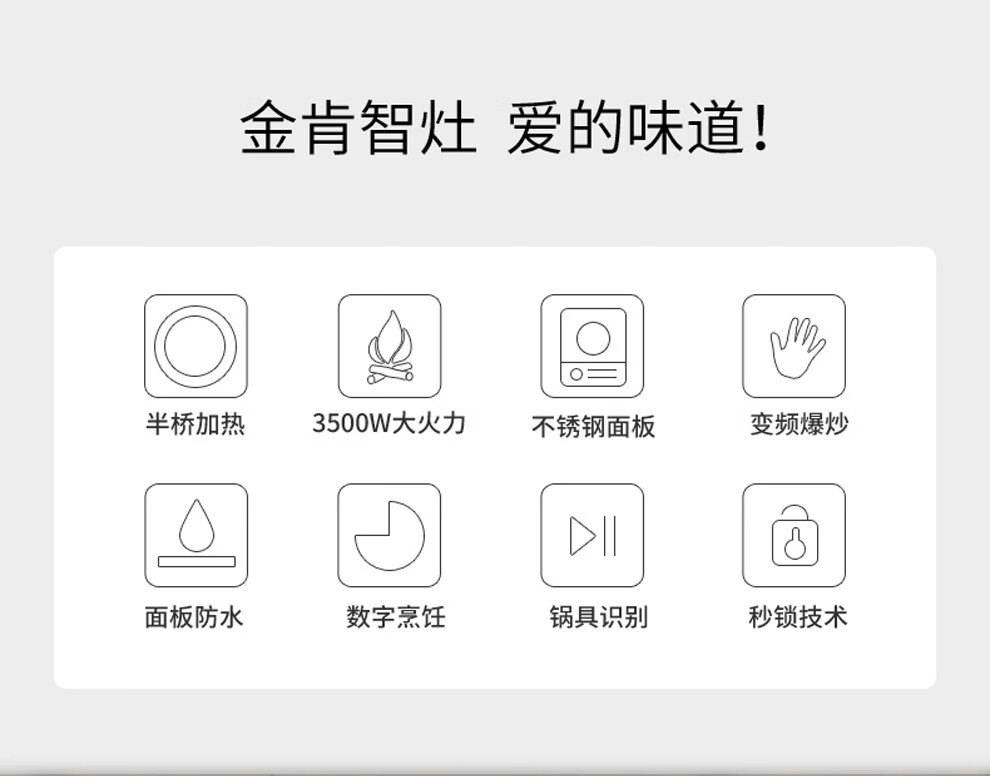 » 金肯变频智能灶3500W大功率 加热速度快凹面设计 符合传统烹饪习惯