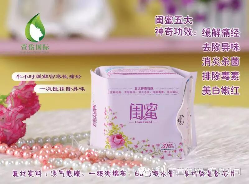 闺蜜卫生巾五大神奇功效:缓解痛经、清除异味、消炎杀菌、排除毒素、美白嫩红。一天闺蜜,一生闺蜜