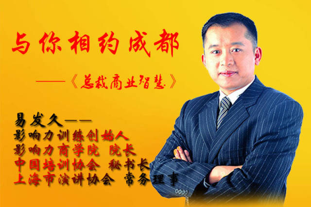 企业家们,你们好,我是易发久,现在很多企业在运营中出现了业绩问题与管理瓶颈,如今你公司想做大做强,绝不能缺少,我将在11月26-28日成都《总裁商业智慧》,给你一套全新的系统与方法及企业业绩快速倍增背后不为人知的商业机密,所以你一定要来!