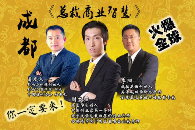 此次华人致富学权威-周文强老师和影响力董事长-易发久老师与疯狂英语创始人-李阳老师,共同为大家分享致富秘籍,帮助学员获得更多快速打造企业的方法……