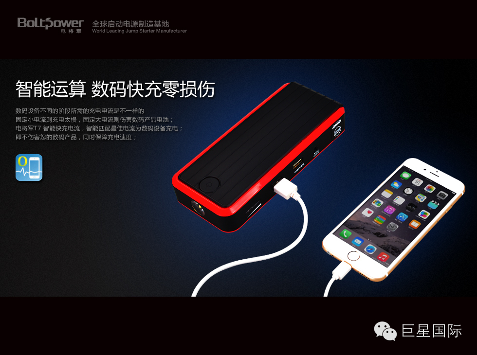 2014年9月,紧跟着iphone6、iphone6PLUS上市,巨星时尚系列T5 T7闪亮登场,以Smaller than Smaller的理念,将应急启动电源做到了极致的Small,Ta漂亮的外观,无可挑剔的做工,再次将巨星创造推上行业巅峰……